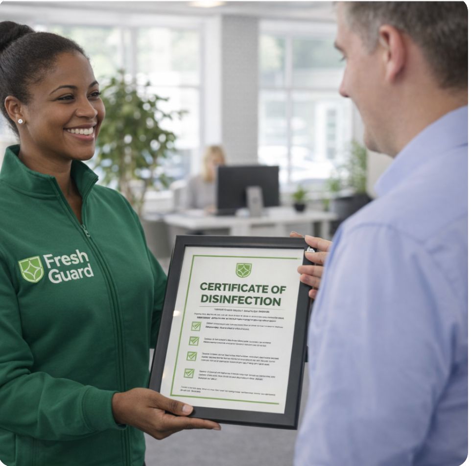 FreshGuard est spécialisée dans la désinfection par nébulisation à sec et le traitement des moisissures en milieu commercial. Nous accompagnons les entreprises exigeant des solutions d'hygiène environnementale rapides, conformes aux normes et hautement efficaces, avec un impact minimal sur leurs activités. Notre technologie antimicrobienne, homologuée par l'UE, traite l'ensemble des environnements, y compris l'air et les zones inaccessibles, afin de protéger les occupants, les biens et la réputation de l'entreprise.